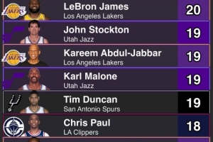19次 —— 斯托克頓、馬龍、賈巴爾、鄧肯