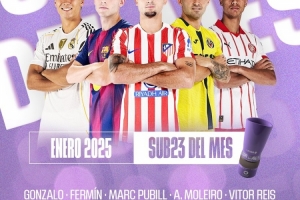 體育資訊1月22日訊 西甲公布了1月聯(lián)賽最佳U23球員候選5人名單,皇薩競各1人入圍。