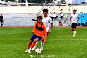 今天下午,在??诙?xùn)的山東泰山隊與青島西海岸隊進(jìn)行了一場熱身賽,本場比賽上下半場各35分鐘。泰山隊由劉騏瑋、王彤、趙劍非、楊瑞琦、吳興涵、梅帥軍、尹嘉熙、鄧淳澤、陳蒲、路俊偉和買烏郎首發(fā)。上半場陳蒲中路斷球后直塞鄧淳澤,后者面對守門員打門偏出立柱。此后雙方互有攻守,以 0:0 的比分結(jié)束上半場比賽。下半場,泰山隊做出換人調(diào)整,劉彬彬、鄭錚、王昊斌和閆恒燁替補(bǔ)登場。青島西海岸隊率先在混戰(zhàn)中搶射破門,一分鐘后陳蒲造點并親自主罰命中扳平比分,臨近比賽結(jié)束,青島西海岸隊抓住反擊機(jī)會打入一球完成反超。最終山東泰山1:2不敵青島西海岸。