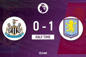 傷停補時4分鐘。上半場比賽結(jié)束,紐卡斯?fàn)柭?lián)0-1阿斯頓維拉。