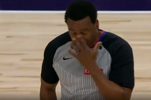 看起來(lái)就很酸爽!蘭德?tīng)柛蓴_&球砸到裁判面部 穆迪拿到球三分!