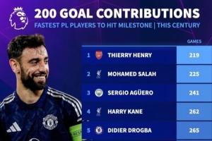 新世紀(jì)最快參與英超200球榜: