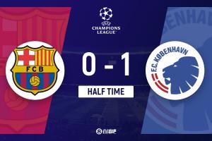上半場補時1分鐘,巴薩0-1哥本哈根。