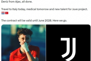 體育資訊1月29日訊 據(jù)知名轉(zhuǎn)會記者羅馬諾報道,尤文將從阿賈克斯簽下16歲天才球員艾薩德·德尼茲。