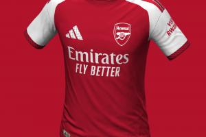 雙紅配色:主體標準為阿森納傳統(tǒng)的紅色,衣領、袖口、肩部中的條紋為深酒紅,這是阿森納主場球衣自20-21賽季后首次啟用雙紅配色。