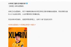 體育資訊01月30日訊 英超球隊狼隊官方消息,U23國足隊長、21歲青島西海岸中場徐彬自由身轉會加盟。