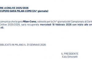 體育資訊1月31日訊 據(jù)意甲聯(lián)賽官網(wǎng)的消息,AC米蘭主場與科莫的補賽時間確定,將在北京時間2月19日03:45進行。