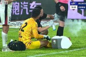 比賽第76分鐘時(shí),劉殿座受傷倒地,隊(duì)醫(yī)進(jìn)場(chǎng)對(duì)他進(jìn)行治療,隨后主裁讓蓉城隊(duì)醫(yī)也給自己的大腿后側(cè)噴上噴霧。
