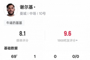 體育資訊2月2日訊 英超第24輪焦點戰(zhàn),曼城客場2-2熱刺。謝爾基首發(fā)出戰(zhàn),打進1粒進球,送出1次關(guān)鍵傳球,還有2次過人成功,評分8.1。