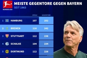 全文摘要:拜仁周五將戰(zhàn)不萊梅。德甲歷史數(shù)據(jù)顯示,漢堡和不萊梅是面對(duì)拜仁丟球最多的球隊(duì),分別以252和242球位居前兩位。斯圖加特、沙爾克等隊(duì)也位列榜單,凸顯了拜仁在德甲的強(qiáng)勢(shì)攻擊力。