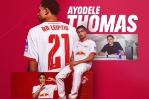公告寫道:“RB萊比錫簽下攻擊手阿約德勒·托馬斯,這位18歲的球員從埃因霍溫轉會而來,與RB萊比錫簽約至2031年,他將身披21號球衣?!?/p>