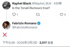 在一則有關(guān)阿森納的轉(zhuǎn)會動態(tài)下,一位球迷向羅馬諾提問:“托納利的傳聞是真的嗎?”