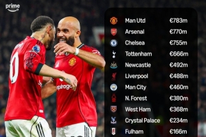 體育資訊2月3日訊 外媒Prime Video Sport根據(jù)德轉(zhuǎn)數(shù)據(jù)列出了英超俱樂部近5個(gè)賽季的凈支出,曼聯(lián)、阿森納、切爾西位列前三,利物浦和曼城排名六、七,布萊頓則是唯一有凈收入的球隊(duì)。