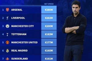 體育資訊2月4日訊 “轉(zhuǎn)會(huì)市場(chǎng)網(wǎng)”統(tǒng)計(jì)了本賽季到目前為止,轉(zhuǎn)會(huì)凈支出最高的十家俱樂部,英超6隊(duì)在列并占據(jù)前5名(單位:歐元;部分聯(lián)賽轉(zhuǎn)會(huì)窗尚未關(guān)閉)。