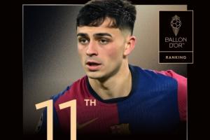 體育資訊09月27日訊 今日《法國足球》官方公布了金球獎(jiǎng)評(píng)選的投票細(xì)節(jié),其中西班牙/巴薩中場(chǎng)佩德里在100位記者中僅獲得了31人的投票,最終獲得124分,位列金球第11名,落后第10的努諾-門德斯47分。