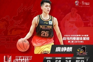 體育資訊2月6日訊 CBA官方公布本賽季第2期月度最佳星銳球員,江蘇后衛(wèi)龐崢麟當選。