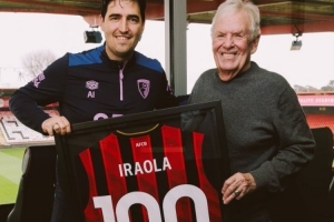 體育資訊2月7日訊 伯恩茅斯俱樂部官推曬圖,主教練伊勞拉收到執(zhí)教球隊(duì)英超百場紀(jì)念球衣。