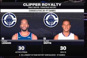 快船隊(duì)史連續(xù)20+紀(jì)錄是鮑伯·麥卡杜保持的57場