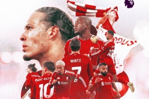 利物浦官方社媒發(fā)布了為此役制作的海報(bào),范戴克、薩拉赫、?;倏恕Ⅺ溈ɡ固?、維爾茨、加克波、科納特、索博斯洛伊出鏡。