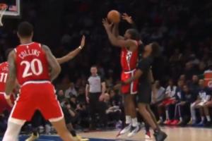 GIF-小卡今日單手抓球空中靜止下墜投籃 神似喬丹