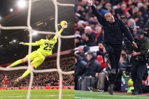 曼城2-1利物浦,多納魯馬補(bǔ)時(shí)神撲,瓜迪奧拉場(chǎng)邊震驚+模仿