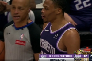 GIF-威少認為被犯規(guī),沖裁判吼吃技犯