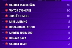 Squawka指出,阿森納本賽季聯(lián)賽頭球打進(jìn)11球,英超球隊之中最多,這是馬杜埃凱職業(yè)生涯至今在英超攻入的第3粒頭球,此前兩粒頭球進(jìn)球來自于2024年對陣西漢姆、2025年對陣?yán)顷牭谋荣悺?/p>