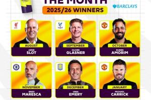 體育資訊02月14日訊 英超官方此前宣布,曼聯(lián)主帥卡里克當(dāng)選英超一月最佳教練,英超也曬圖總結(jié)了本賽季目前為止的六位月最佳教練得主。六人分別是: