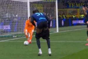 體育資訊02月15日訊 國米vs尤文開場(chǎng)3分鐘,比塞克防下伊爾迪茲,這下倒地時(shí)比塞克褲子掉了!