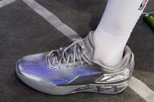 今日NBA全明星正賽日,勇士球星斯蒂芬· 庫(kù)里穿著安踏KT11銀色限定版亮相。