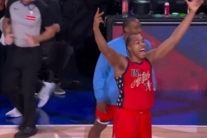 體育資訊2月16日訊 NBA全明星正賽循環(huán)賽,世界隊(duì)加時(shí)35-37惜敗美國(guó)新星隊(duì)。