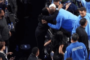 ESPN洛杉磯分部官方Instagram曬出一段現(xiàn)場花絮,賽前美國星條隊(duì)球星詹姆斯在場邊深情擁抱了自己的母親格洛麗亞。