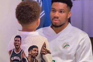 賽后,字母哥帶著他的兒子們向喜歡的球星索要簽名,他對(duì)兒子說(shuō)道:“要努力訓(xùn)練,這樣你們以后就能夠?qū)﹃囄陌鄟嗰R了?!?/p>