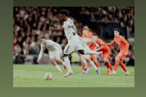 西甲第24輪比賽,維尼修斯點(diǎn)射雙響,皇馬主場(chǎng)4-1擊敗皇家社會(huì)。其中維尼修斯兩個(gè)點(diǎn)球都是跳步主罰,這也是若日尼奧標(biāo)志性的罰點(diǎn)方式。