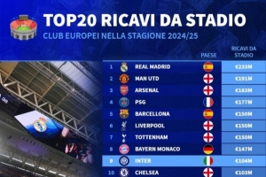 全文摘要:德國(guó)轉(zhuǎn)會(huì)市場(chǎng)公布了上賽季歐洲俱樂(lè)部主場(chǎng)門票收入排名?;始荫R德里以2.33億歐元高居榜首,曼聯(lián)以1.91億歐元緊隨其后。阿森納、巴黎圣日耳曼和巴塞羅那分列三至五位,收入均超1.5億歐元。這份榜單展現(xiàn)了歐洲頂級(jí)俱樂(lè)部強(qiáng)大的商業(yè)吸金能力。