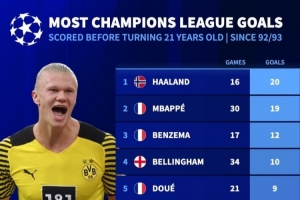 全文摘要:巴黎歐冠附加賽逆轉(zhuǎn)摩納哥,替補雙功的杜埃以21場9球躋身改制后U21射手榜第五位,該榜單哈蘭德、姆巴佩等巨星名列前茅。