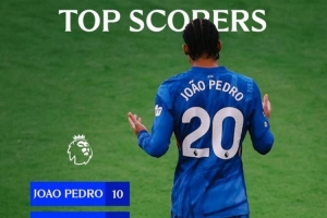 切爾西官方列本賽季隊內(nèi)英超進(jìn)球榜,若昂·佩德羅以10球居首,帕爾默、恩佐8球并列第二。