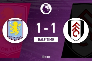 傷停補時2分鐘。上半場比賽結束,阿斯頓維拉1-1富勒姆。