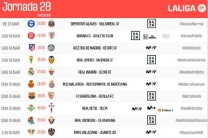 體育資訊2月19日訊 西甲官方公布聯(lián)賽第28輪各場開球時(shí)間,3月15日4:00皇馬vs埃爾切,23:15巴薩vs塞維利亞。