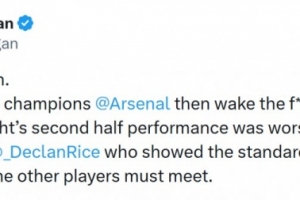 摩根寫道:“表現(xiàn)不夠好。若想成為冠軍,阿森納就他X趕緊醒醒吧,別等到為時(shí)已晚。昨晚下半場的表現(xiàn)是我多年來見過的最糟糕的。唯獨(dú)賴斯值得寬容——他展現(xiàn)的拼勁和強(qiáng)度正是其他球員必須達(dá)到的標(biāo)準(zhǔn)。”