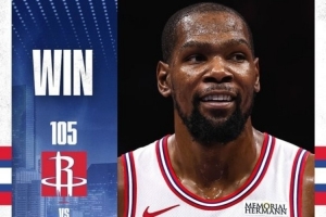 賽后火箭官方發(fā)布贏球海報(bào),杜蘭特成為封面人物。