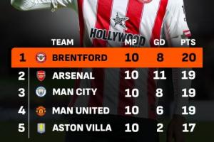 數(shù)據(jù)顯示,布倫特福德近10輪英超6勝2平2負,積20分,是同期贏得積分最多的英超球隊,甚至超過了阿森納、曼城和曼聯(lián)等豪門。