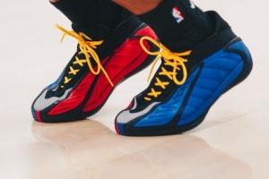 今日愛(ài)德華茲上腳了昨日訓(xùn)練時(shí)曾上腳的鞋款——AE 2 堪薩斯大學(xué)PE。這個(gè)配色采用了陰陽(yáng)紅藍(lán)配色,鞋后跟有堪薩斯大學(xué)的吉祥物Jayhawk(松鴉鷹)。