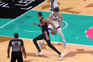 喬丹動(dòng)作!文班絲滑假轉(zhuǎn)身晃飛防守 凌波微步滑翔暴扣沒(méi)人能攔