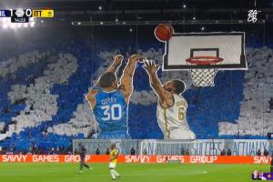 今日利雅得新月1-1戰(zhàn)平吉達(dá)聯(lián)合的沙特國家德比賽中,利雅得新月主隊(duì)拉巨型TIFO致敬庫里,象征著在對(duì)手球隊(duì)頭上輕松拿到3分,現(xiàn)場(chǎng)解說也對(duì)這個(gè)巨型TIFO的創(chuàng)意頗為贊賞。