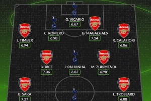 中場:賴斯(阿森納)、帕利尼亞(熱刺)、蘇維門迪(阿森納)