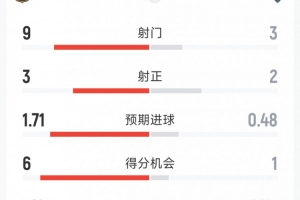 預(yù)期進(jìn)球:1.71-0.48