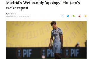 針對中國球迷的批評,皇家馬德里俱樂部在中國社交媒體微博上發(fā)布聲明,引述了球員迪恩·赫伊森因其在Instagram上具有爭議的轉(zhuǎn)載行為而作出的道歉。