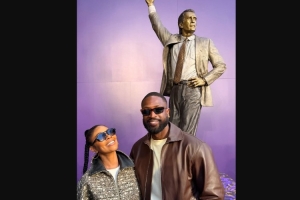 韋德也出席了此次活動,韋德還更新微博,曬出了與雕像的合影,并配文寫道:“能在你手下打球是一種榮幸,萊利!恭喜你成為湖人隊(duì)第一個(gè)豎立雕像的教練?。↖t's an honor to play under your leadership, Pat!)”