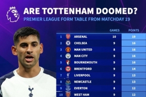 體育資訊2月23日訊 德國(guó)轉(zhuǎn)會(huì)市場(chǎng)統(tǒng)計(jì)了英超各隊(duì)第19輪比賽以來(lái)拿到的積分,并列出榜單,阿森納19分最多,熱刺4分墊底。